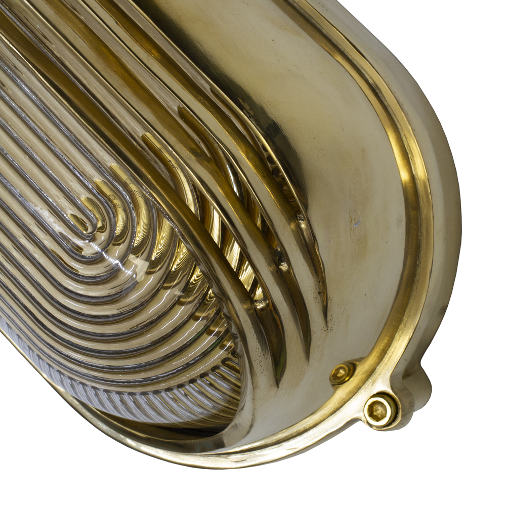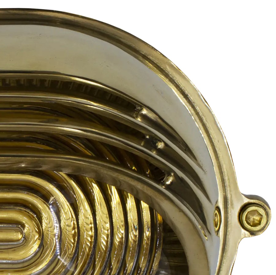Nástěnné svítidlo Marlborough Eyelid Bulkhead je ručně vyrobené z masivní mosazi s prizmatickým sklem a vysokým krytím IP65, každý kus je originál, povrchová úprava nese otisk řemeslného mistrovství, kvality a prestiže.
