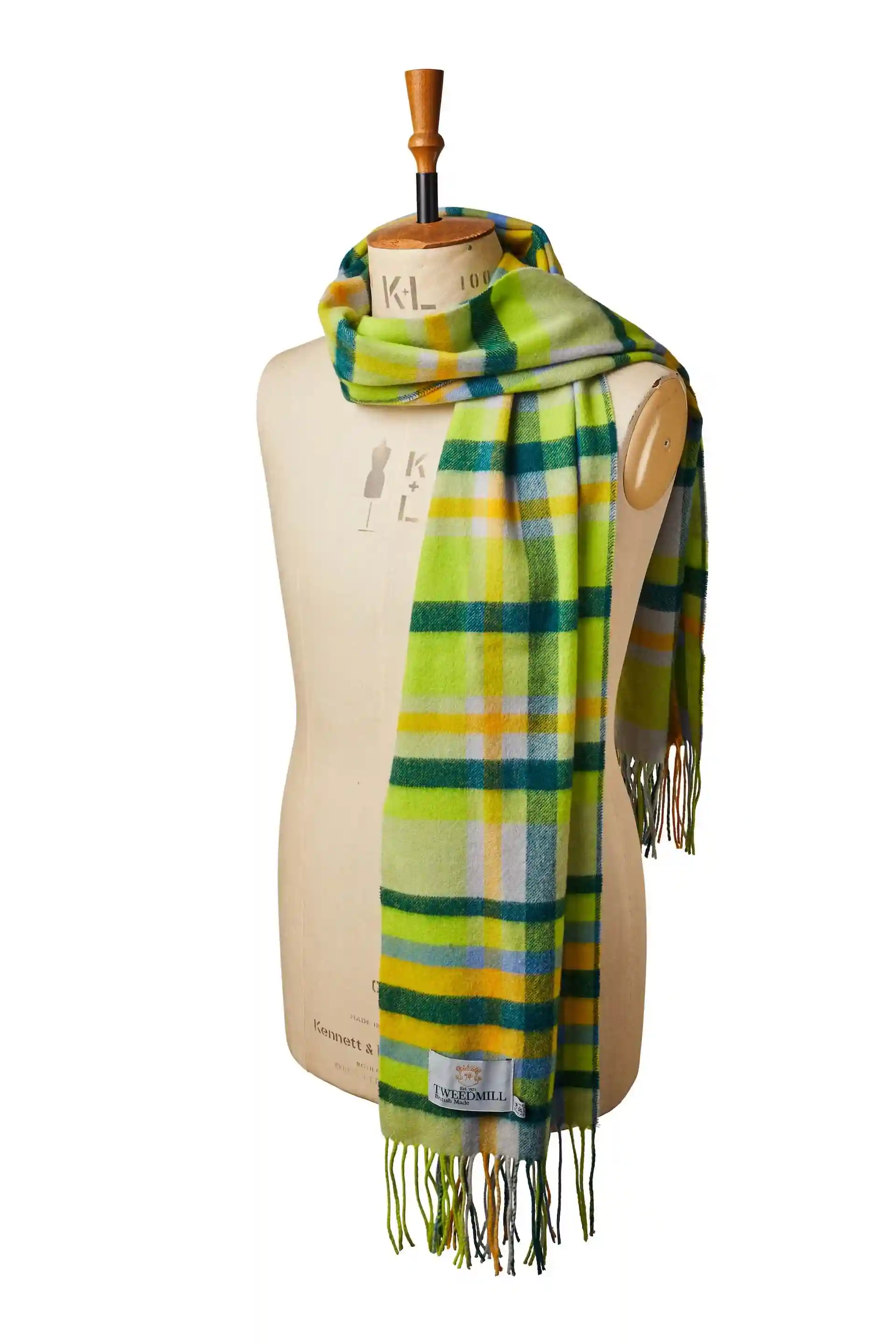 Naše široké šály z jehněčí vlny jsou vyrobeny ve Walesu ve Velké Británii. Krásná šála, perfektní k zachumlání, lze ji také použít jako šál přes ramena. Tkaný ve vzoru Bright Check v jedné z oblíbených barev.