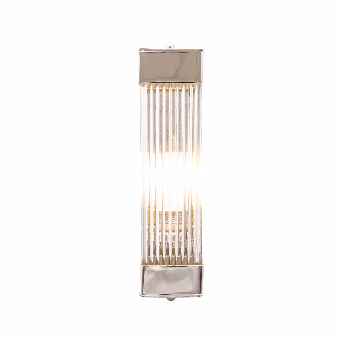 Nástěnné svítidlo Gatsby inspirované stylem Art Deco s ručně žebrovaným sklem. Jemné rozptýlené světlo, krytí IP vhodné do koupelen, možnost vertikální i horizontální montáže. Dostupné ve více velikostech a povrchových úpravách.