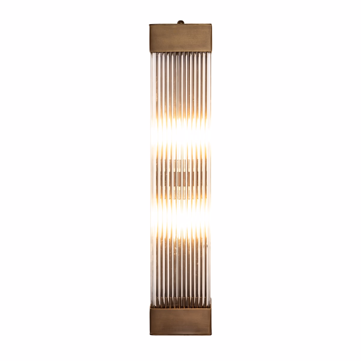 Prodloužené nástěnné svítidlo Gatsby Tall ve stylu Art Deco s ručně žebrovaným sklem. Vhodné do koupelen, montáž vertikálně i horizontálně, dostupné v několika luxusních povrchových úpravách.