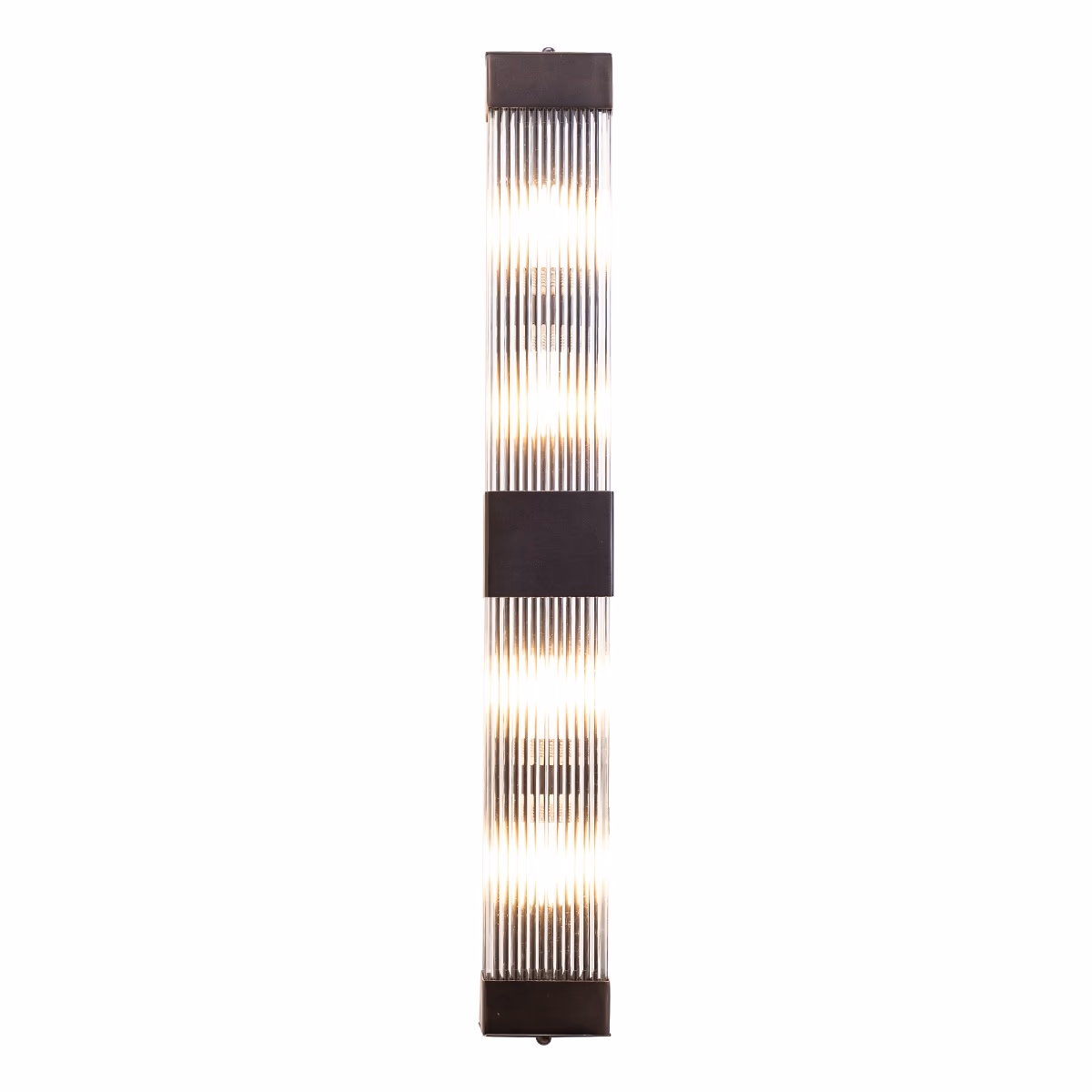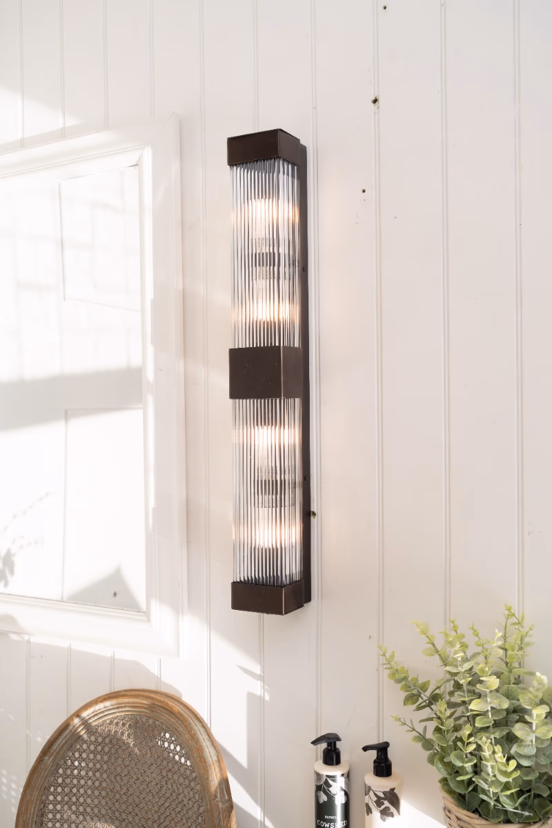 Nástěnné svítidlo Gatsby Double, inspirované estetikou Art Deco, zaujme svým výrazným obdélníkovým tvarem a ručně žebrovaným sklem, které vytváří jemné, rovnoměrně rozptýlené světlo. Dvojitý světelný prvek poskytuje vyšší světelný výkon a zároveň zachovává elegantní, kultivovaný vzhled.