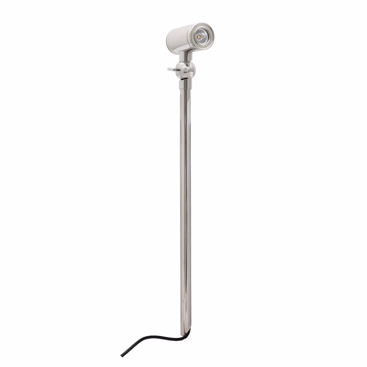 Zapichovací zemní bodové svítidlo z oceli v námořní kvalitě s nastavitelným reflektorem.
