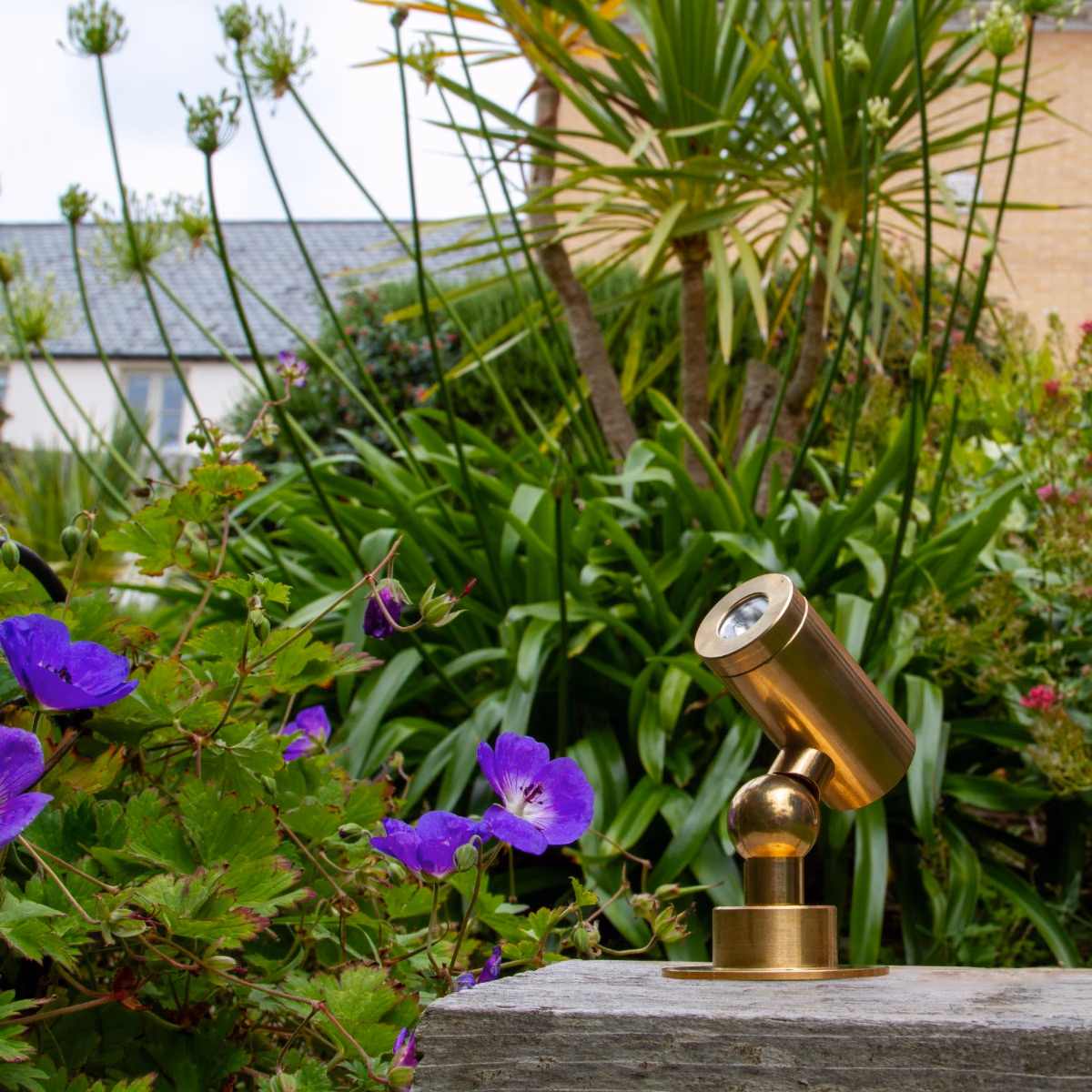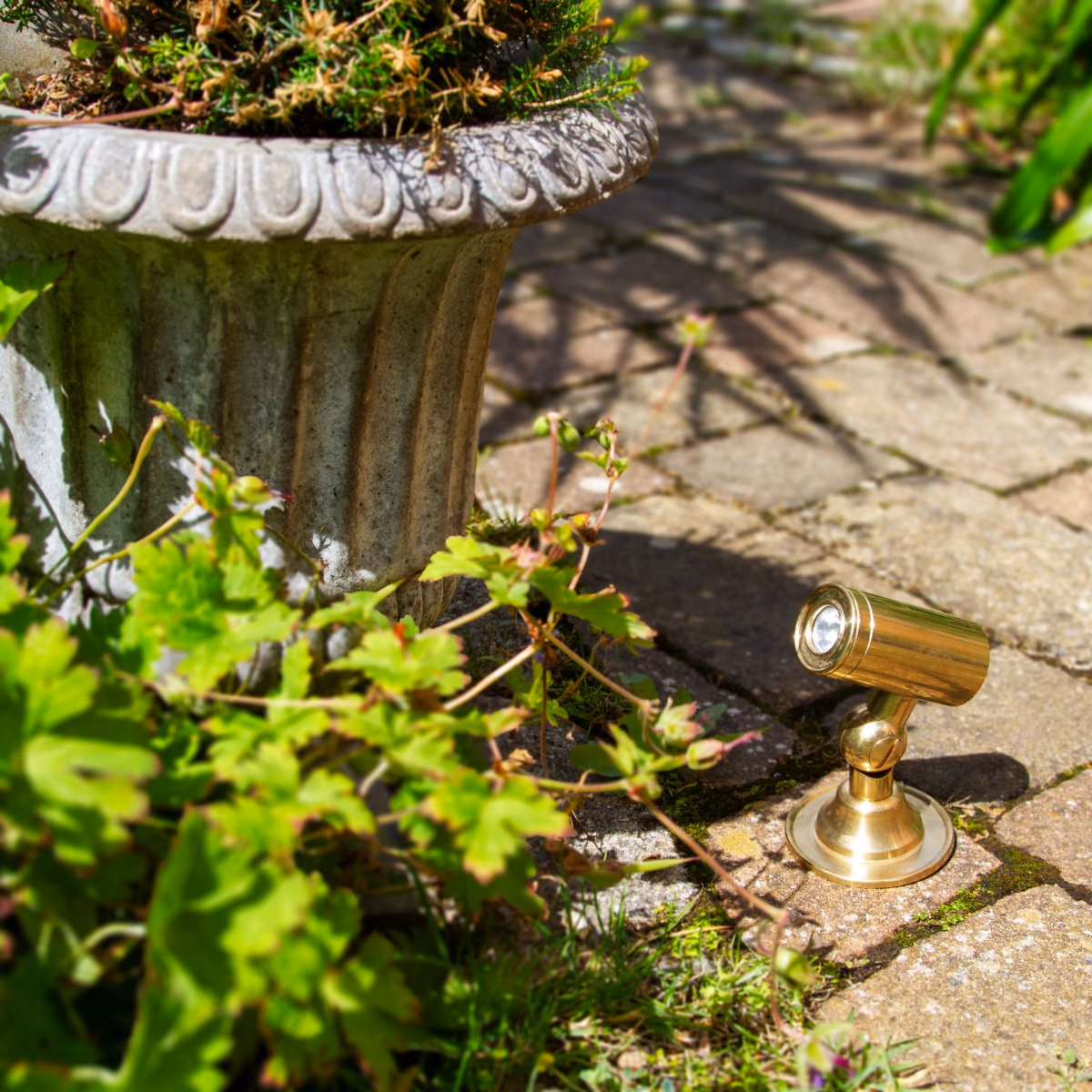 Povrchová úprava ze surové (raw) mosazi v kombinaci s elegantním utahovacím šroubem bez rušivých detailů podtrhuje čistý, technicky precizní vzhled svítidla. Směrový reflektor lze naklápět nahoru i dolů, což umožňuje cíleně zvýraznit zahradní prvky, zeleň, fasádu nebo architektonické detaily a vytvořit příjemnou, vítající atmosféru exteriéru.