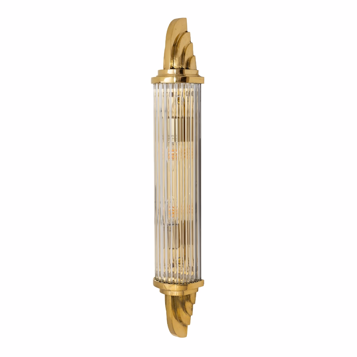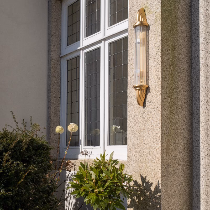 Nástěnné svítidlo Sheraton z masivní mosazi v art deco stylu s prizmatickým sklem. Vhodné do koupelen (IP44) i krytých venkovních prostor.