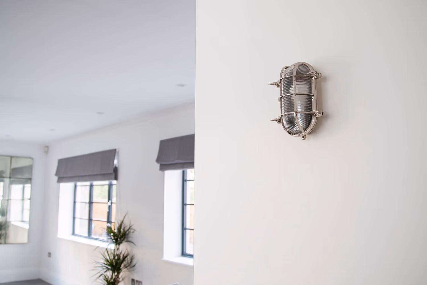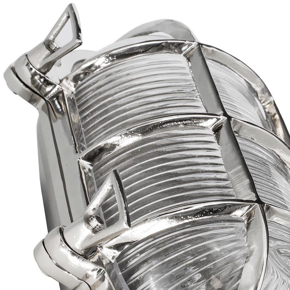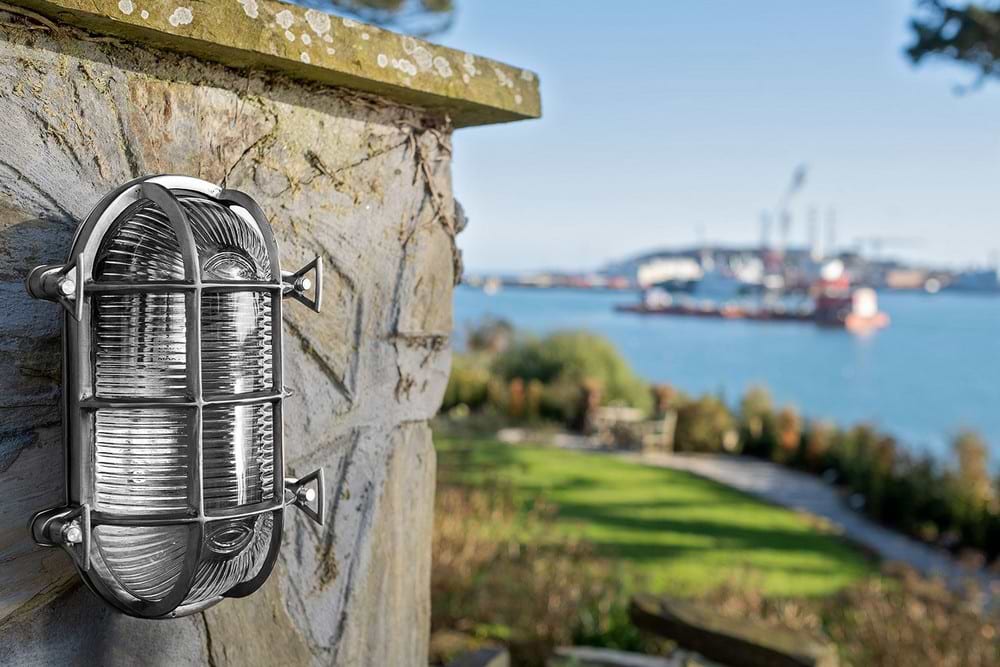 Klasický námořnický styl nástěnného bulkhead svítidla Flaxman v elegantní niklové povrchové úpravě působí výrazně a kultivovaně v jakémkoli venkovním prostoru i v koupelně. Svítidlo je ručně vyrobeno z masivní mosazi a doplněno silným čirým prizmatickým sklem, které chrání žárovku a zároveň podtrhuje vysokou kvalitu zpracování i světelný efekt.