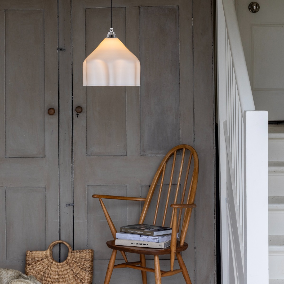Nenápadné zvlnění a lněný vizuální efekt činí tento inspirativní design ideální volbou zejména do rustikálních kuchyní, tradičních ložnic nebo interiérů, kde se snoubí přirozenost s nadčasovou elegancí. Svítidlo působí harmonicky jak jako solitér, tak i v kombinaci s dalšími prvky interiéru.