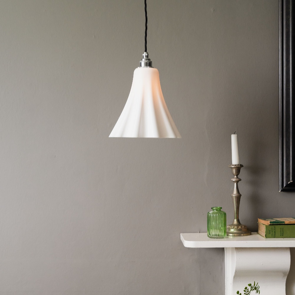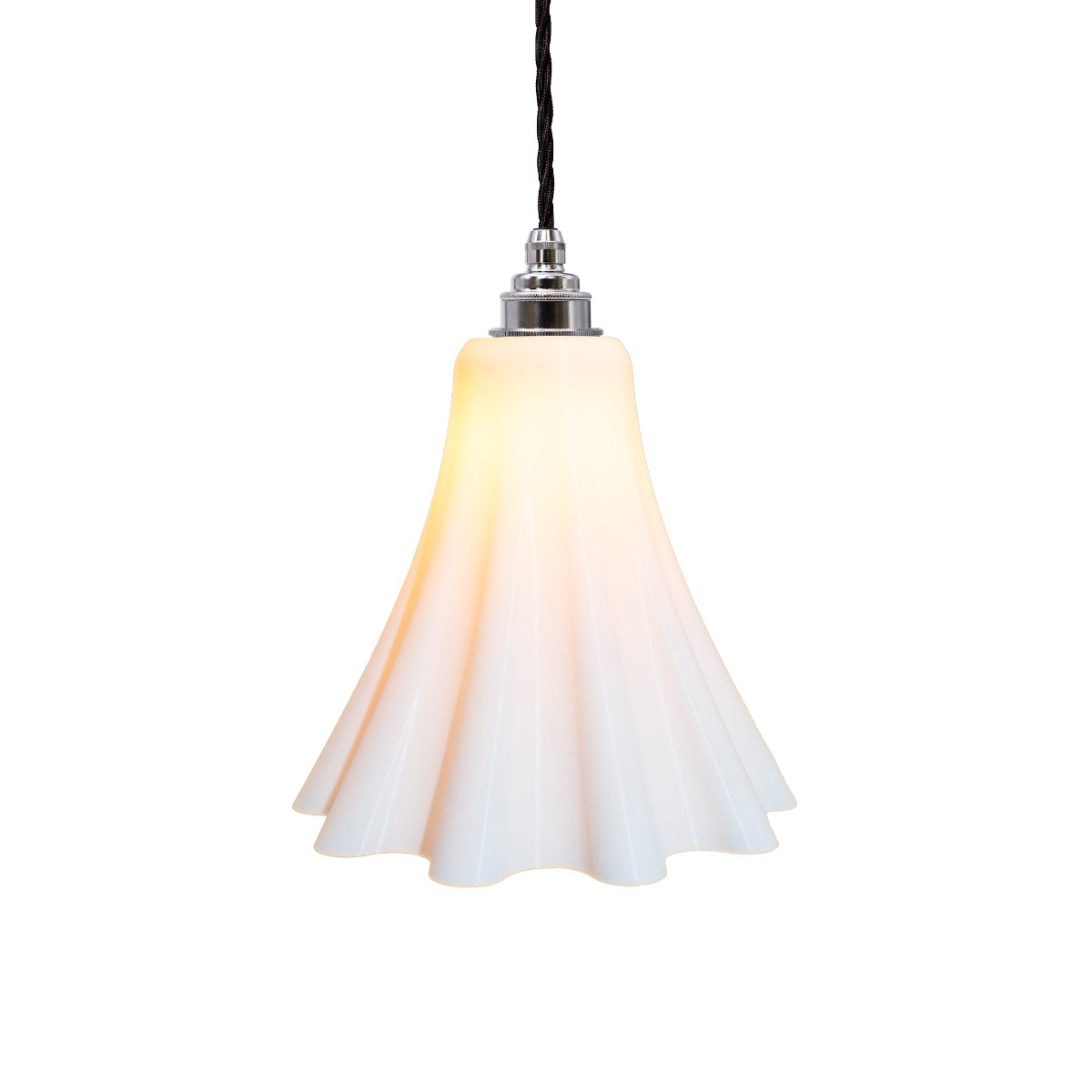 Svítidlo Bluebell je vítězným návrhem vůbec první školní iniciativy Cleaner Ocean Project. Jeho nádherně tvarovanou siluetu vytvořila Emily, inspirována jemnou krásou jarního květu zvonku, což se odráží v organických liniích a přirozené eleganci designu.