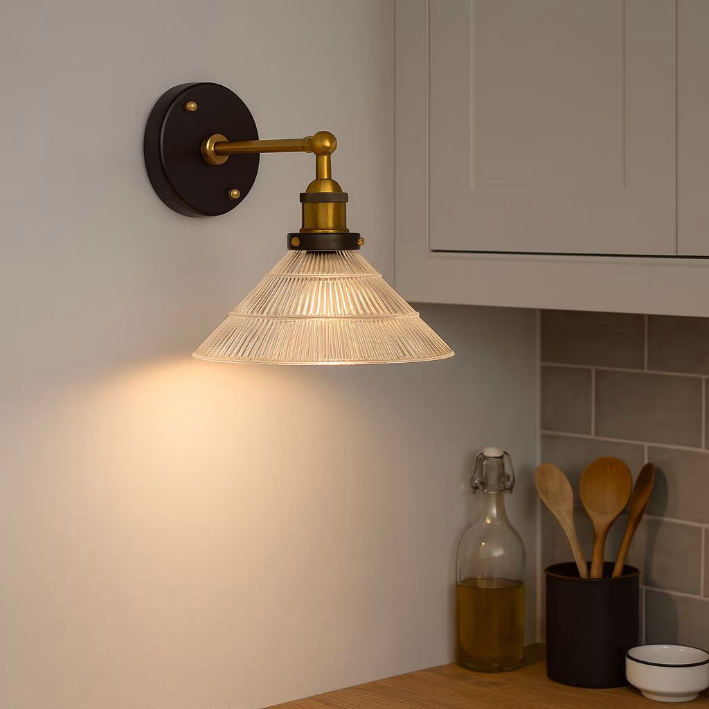 Romilly – nástěnné svítidlo s leptaným kuželovitým sklem inspirované klasickým francouzským designem. Ideální jako noční nebo čtecí osvětlení, vhodné do různých stylů interiéru.