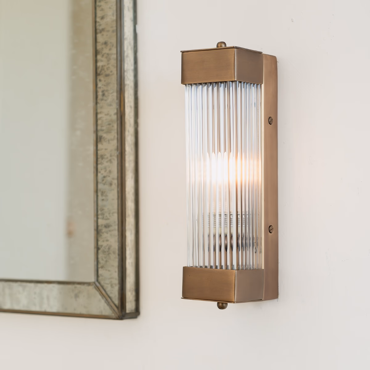 Nástěnné svítidlo Gatsby inspirované stylem Art Deco s ručně žebrovaným sklem. Jemné rozptýlené světlo, krytí IP vhodné do koupelen, možnost vertikální i horizontální montáže. Dostupné ve více velikostech a povrchových úpravách.