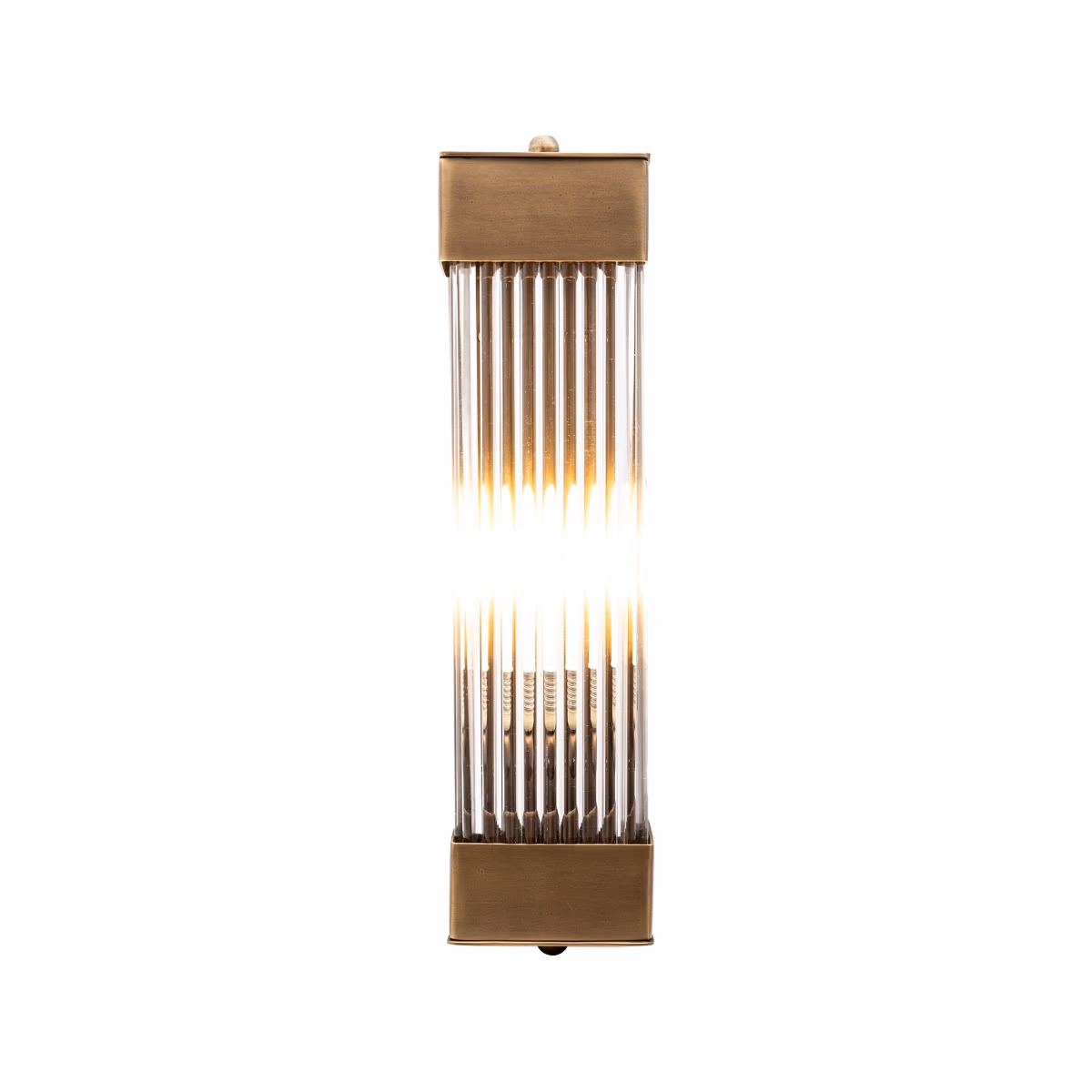Inspirováno ikonickým designem Art Deco, malé nástěnné svítidlo Gatsby vyniká elegantním obdélníkovým tvarem a ručně žebrovaným sklem, které vytváří jemné, rovnoměrně rozptýlené světlo. Díky svému sofistikovanému vzhledu dodává prostoru decentní luxus a nadčasovou eleganci.