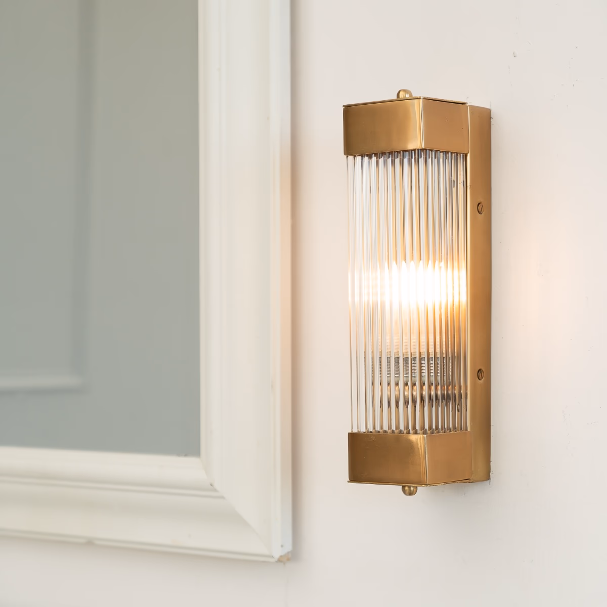 Nástěnné svítidlo Gatsby inspirované stylem Art Deco s ručně žebrovaným sklem. Jemné rozptýlené světlo, krytí IP vhodné do koupelen, možnost vertikální i horizontální montáže. Dostupné ve více velikostech a povrchových úpravách.