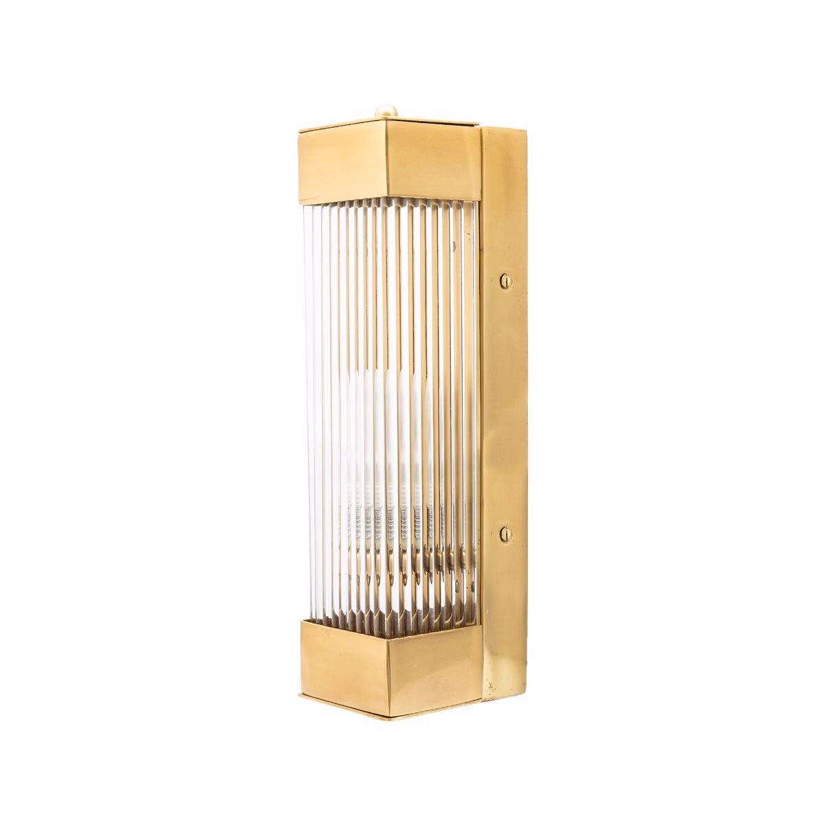 Inspirováno ikonickým designem Art Deco, malé nástěnné svítidlo Gatsby vyniká elegantním obdélníkovým tvarem a ručně žebrovaným sklem, které vytváří jemné, rovnoměrně rozptýlené světlo. Díky svému sofistikovanému vzhledu dodává prostoru decentní luxus a nadčasovou eleganci.