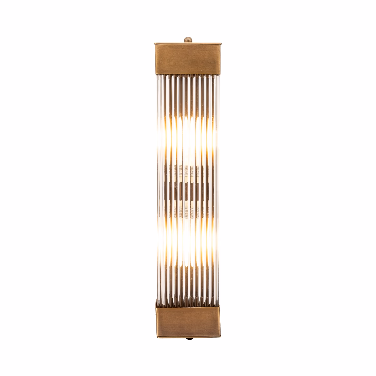 Elegantní nástěnné svítidlo Gatsby Medium ve stylu Art Deco s ručně žebrovaným sklem. Vhodné do koupelen, montáž horizontálně i vertikálně, dostupné v několika povrchových úpravách.