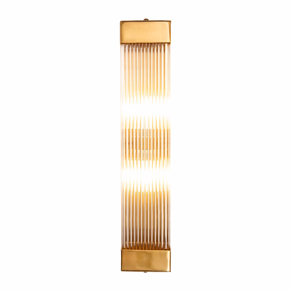 Prodloužené nástěnné svítidlo Gatsby Tall ve stylu Art Deco s ručně žebrovaným sklem. Vhodné do koupelen, montáž vertikálně i horizontálně, dostupné v několika luxusních povrchových úpravách.