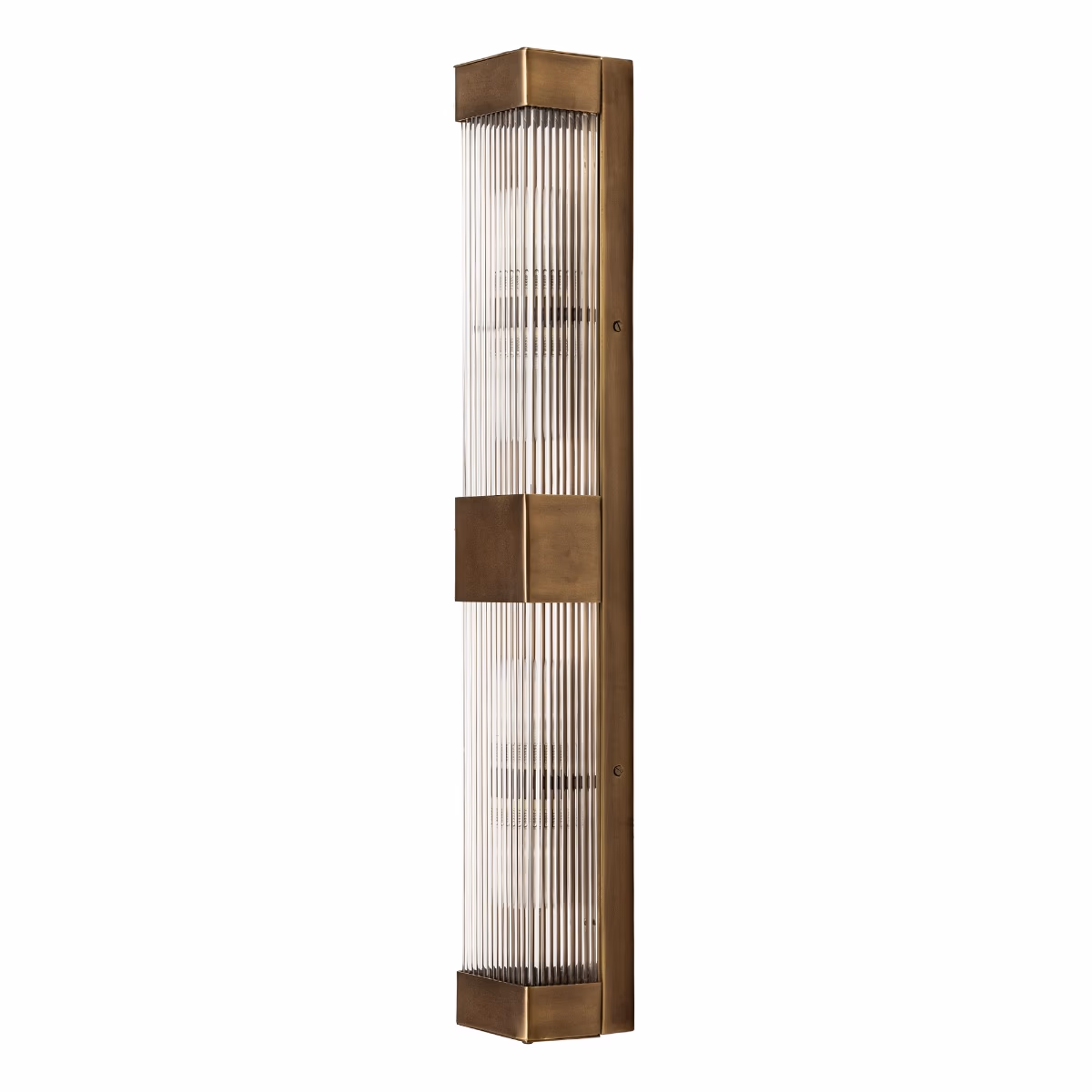 Nástěnné svítidlo Gatsby Double, inspirované estetikou Art Deco, zaujme svým výrazným obdélníkovým tvarem a ručně žebrovaným sklem, které vytváří jemné, rovnoměrně rozptýlené světlo. Dvojitý světelný prvek poskytuje vyšší světelný výkon a zároveň zachovává elegantní, kultivovaný vzhled.