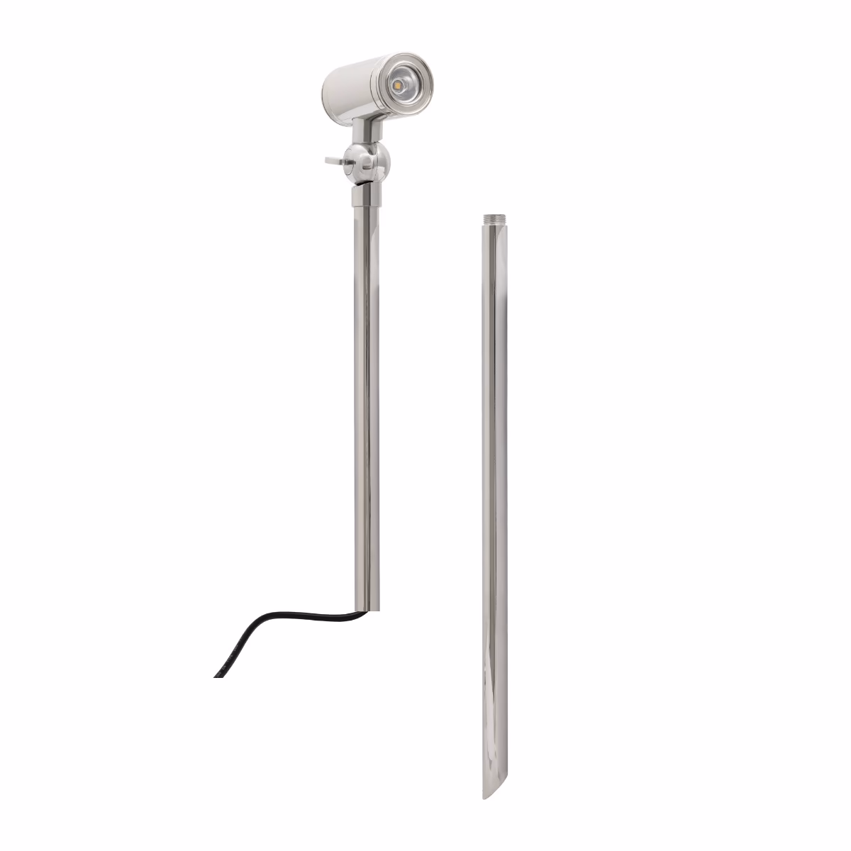 Zapichovací zemní bodové svítidlo z oceli v námořní kvalitě s nastavitelným reflektorem. Teplé světlo, tradiční vzhled, ideální pro zahradní akcentní osvětlení.