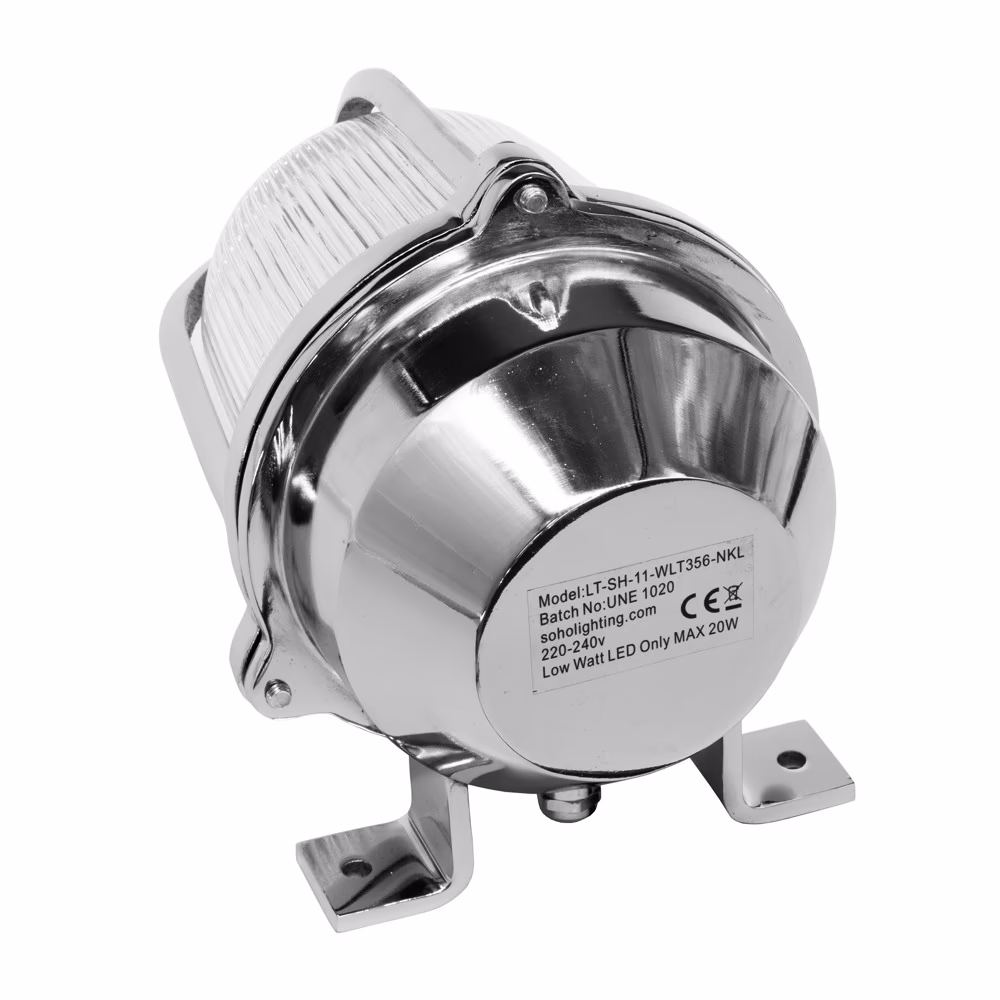 Ručně vyrobené nástěnné svítidlo z masivní mosazi se silným prizmatickým sklem a sofistikovanou niklovou povrchovou úpravou dodá nadčasový charakter a vytříbené kouzlo každému venkovnímu prostoru i koupelně. Precizní řemeslné zpracování se projevuje v jemných variacích povrchu, které podtrhují luxusní vzhled a vysokou úroveň zpracování.