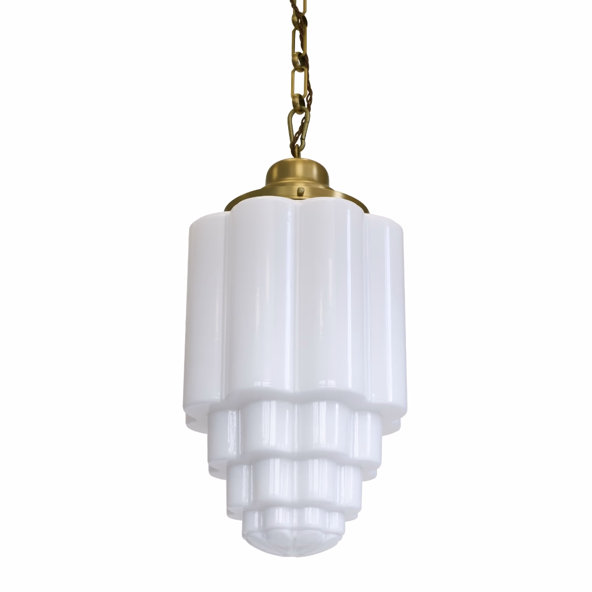 Glasshouse Pendant – závěsné svítidlo z masivní mosazi a kvalitního skla ve variantě opálové. Nadčasový design inspirovaný 20. stoletím v provedení lacquered brass.