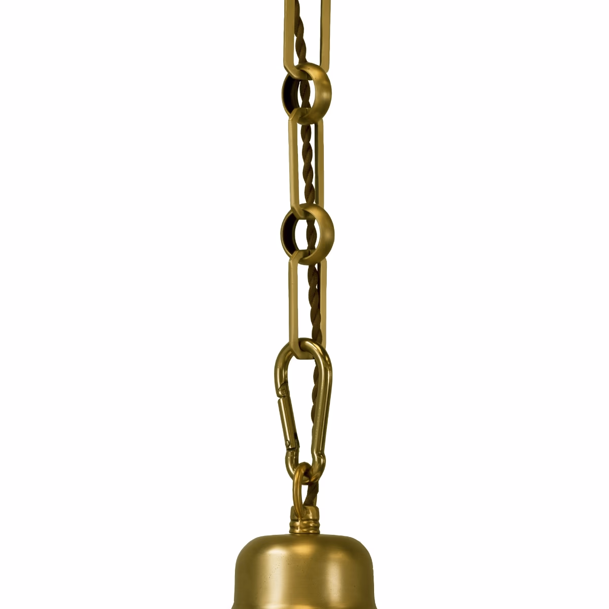 Svítidlo doplňuje elegantní řetěz a krytka z masivní mosazi, lakovaná patinovaná mosaz. Zvýrazňuje jedinečný charakter tohoto klasického svítidla, které i přes svůj vintage původ působí neobyčejně současně.