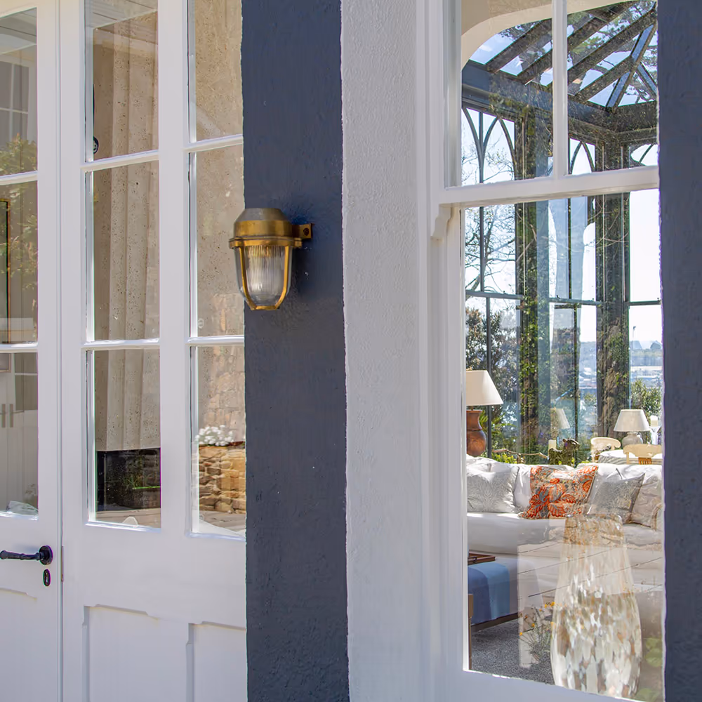 Svítidlo je vyrobeno z pravé masivní mosazi, která je přirozeně odolná vůči korozi, a proto je ideální volbou pro venkovní použití i do koupelen. Mosaz časem přirozeně stárne a získává elegantní patinu, případně ji lze pomocí vhodného lešticího prostředku snadno navrátit do původního vzhledu.