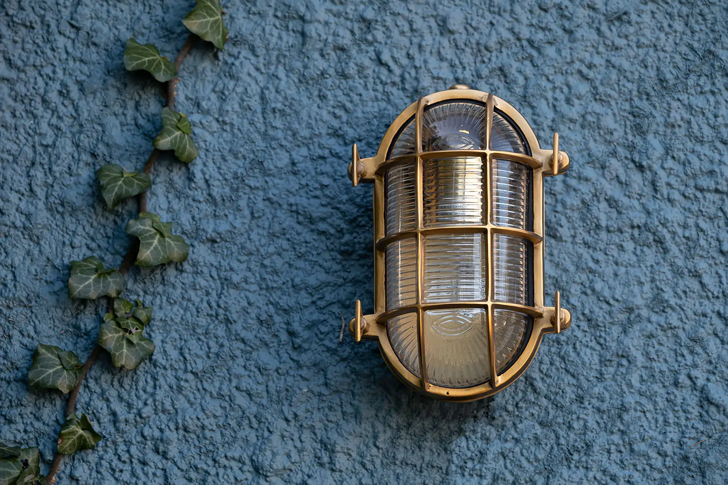 Flaxman je robustní a pevné, a přesto elegantní venkovní nástěnné bulkhead svítidlo v námořnickém stylu. Masivní mosazný plášť obklopuje leptané sklo, které chrání žárovku a zároveň nechává krásně vyniknout její světelný efekt. Výsledkem je vyvážené spojení funkčnosti, odolnosti a estetické hodnoty.