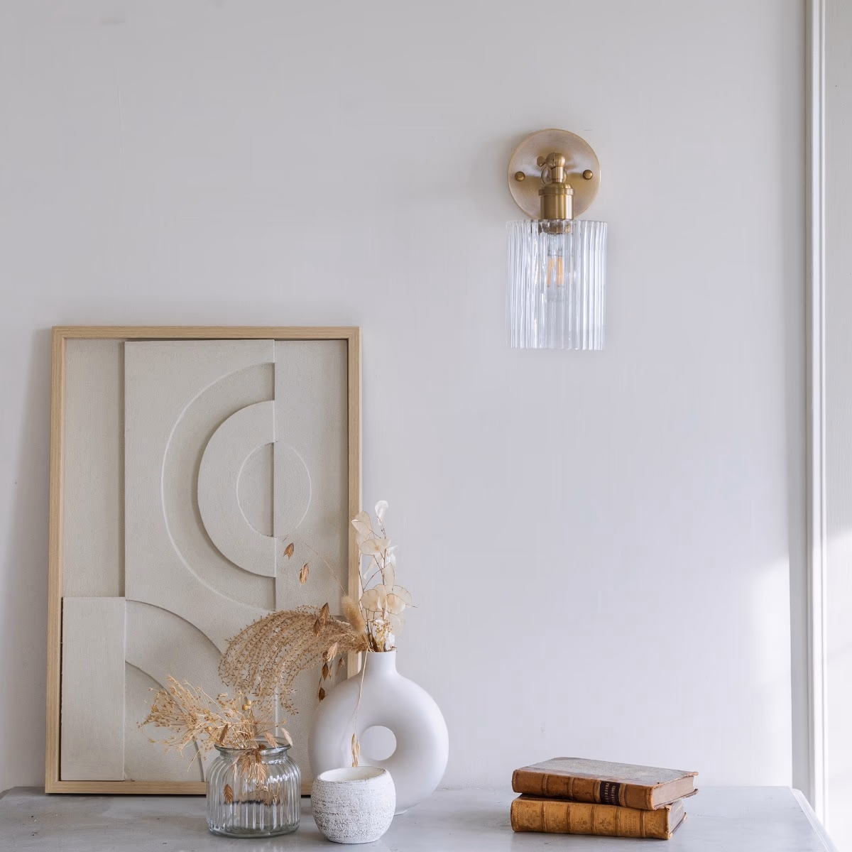 Henley Cylinde Petite Ribbed Glass and Brass Wall Light