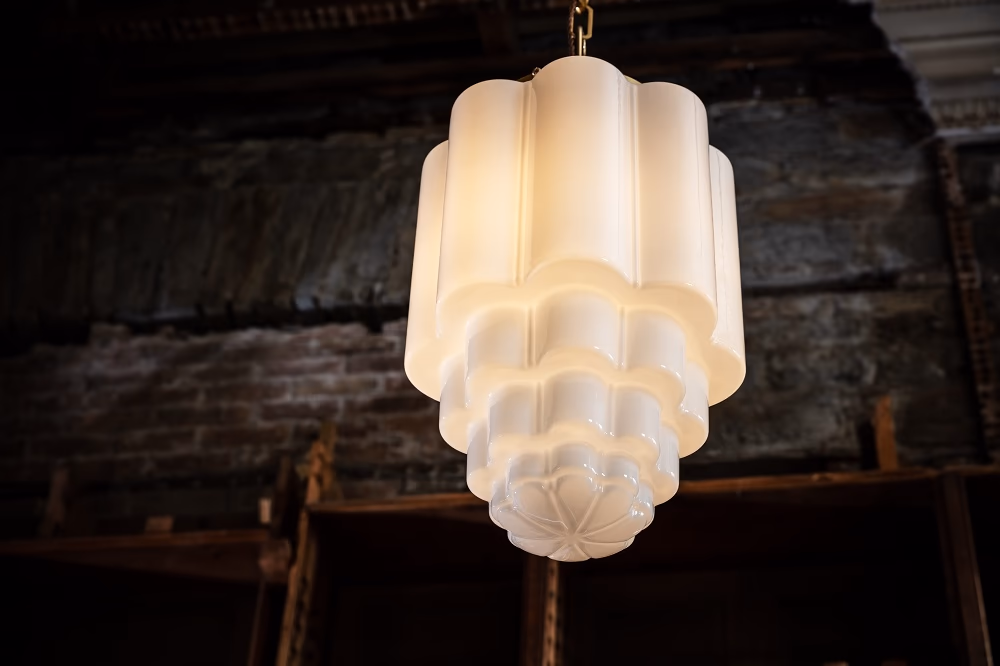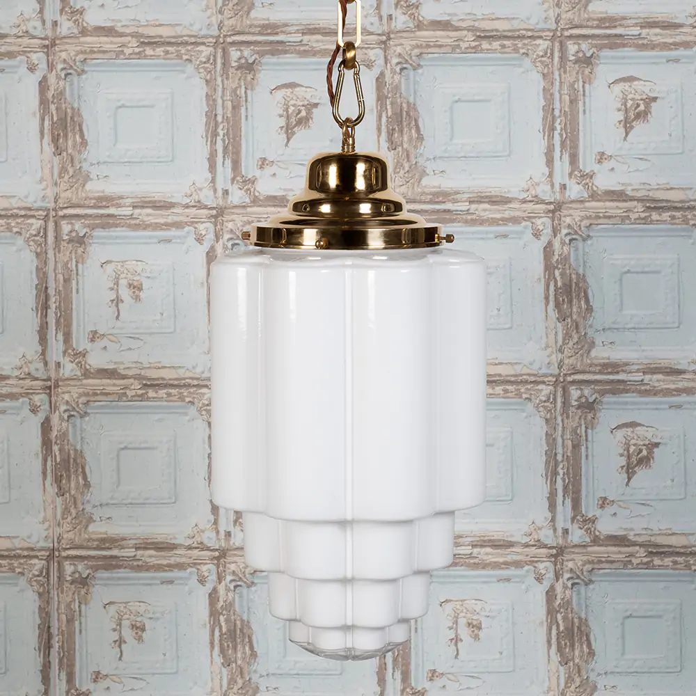Glasshouse Polished Brass Opal Art Deco Pendant Light