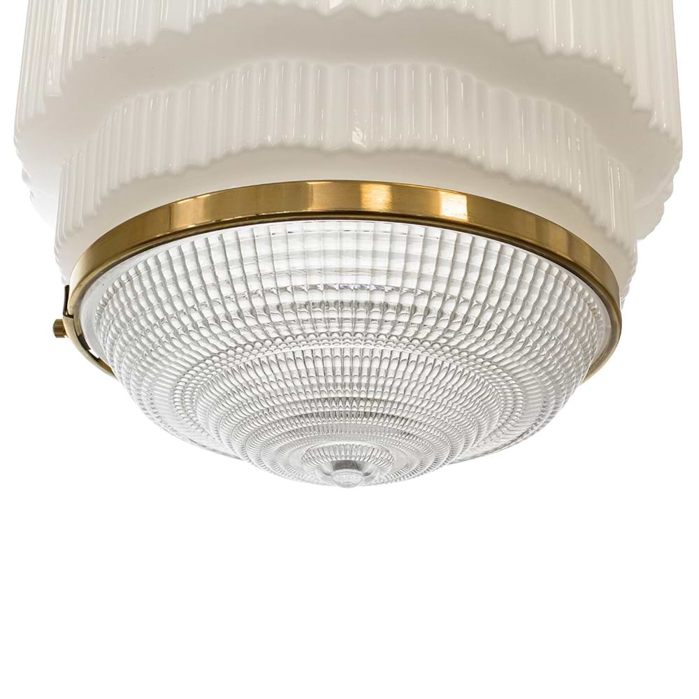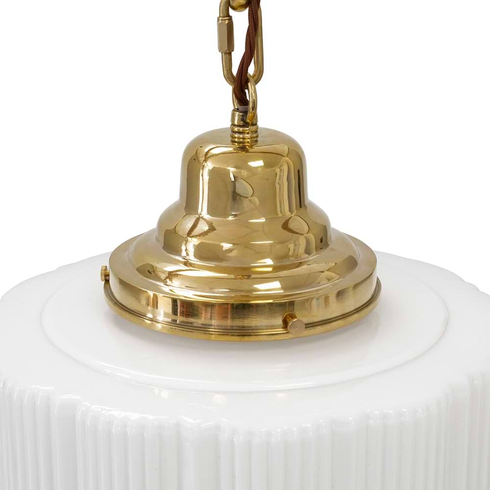 The Dean – závěsné svítidlo v neoklasicistním stylu z 20. let v leštěné mosazi. Mléčné sklo a křišťálové dno vytvářejí hřejivé světlo a okouzlující třpyt.